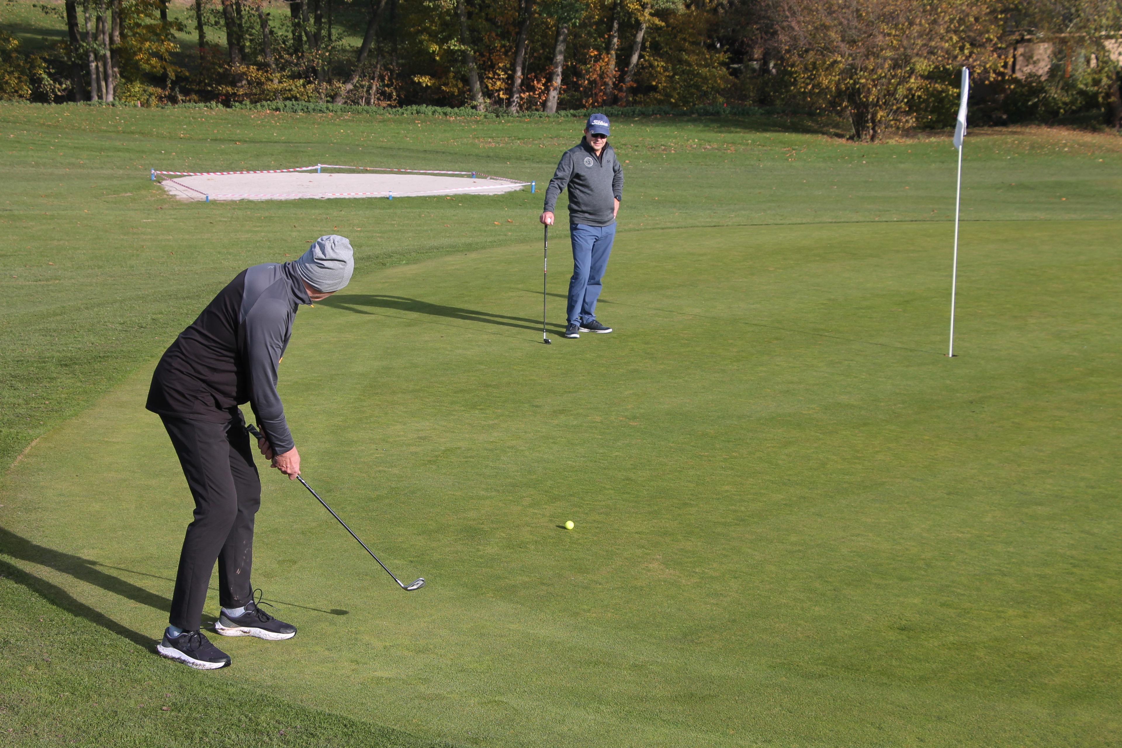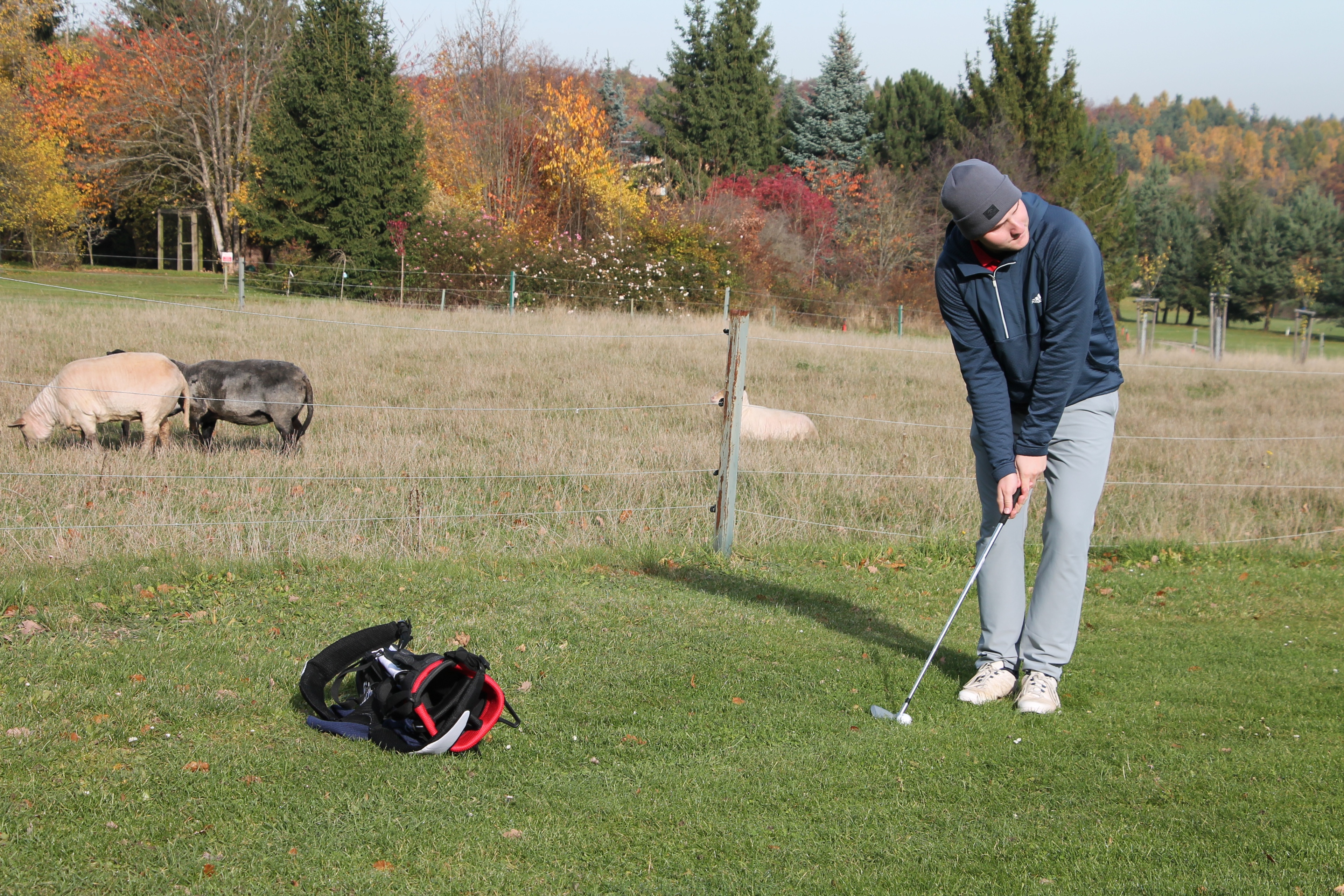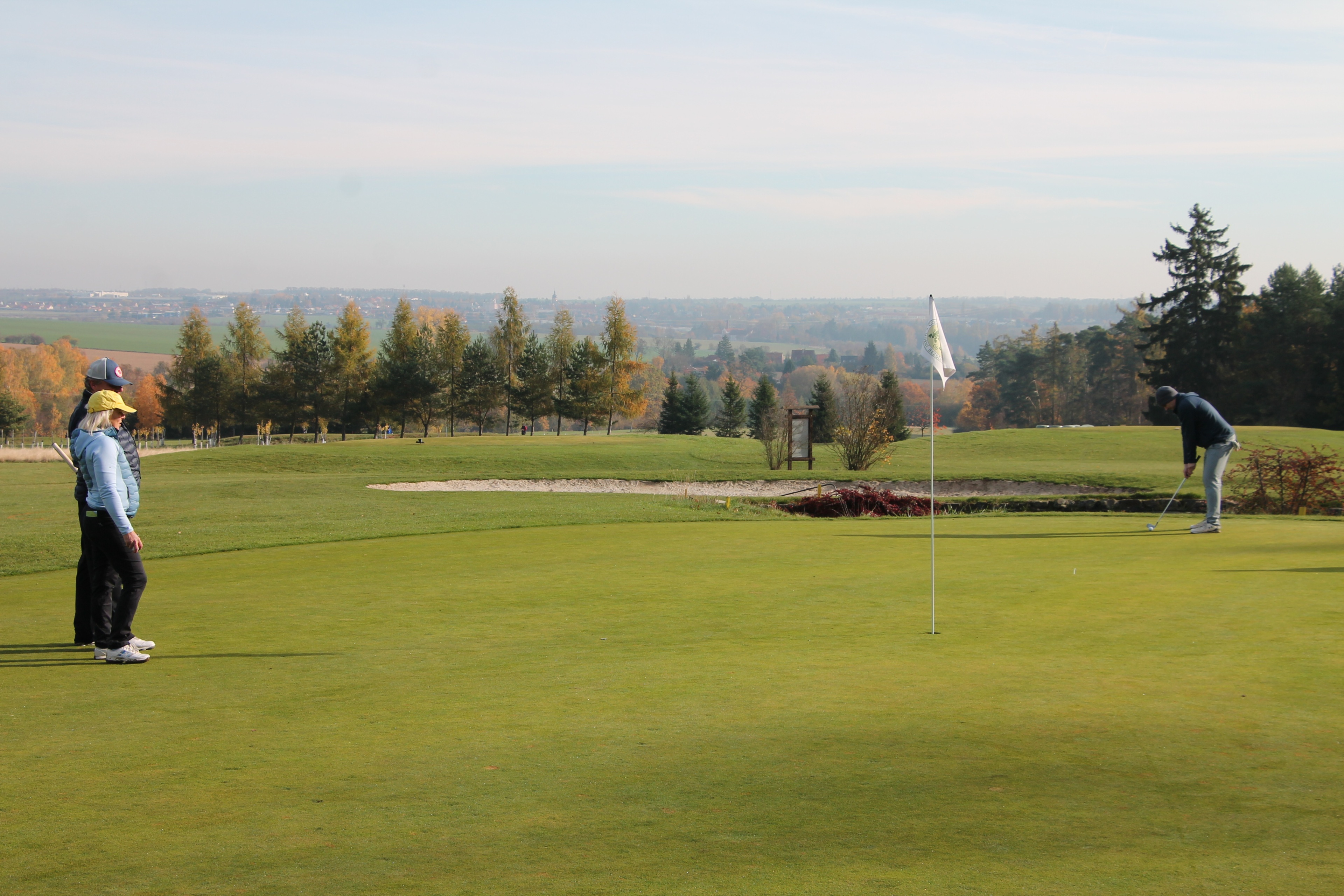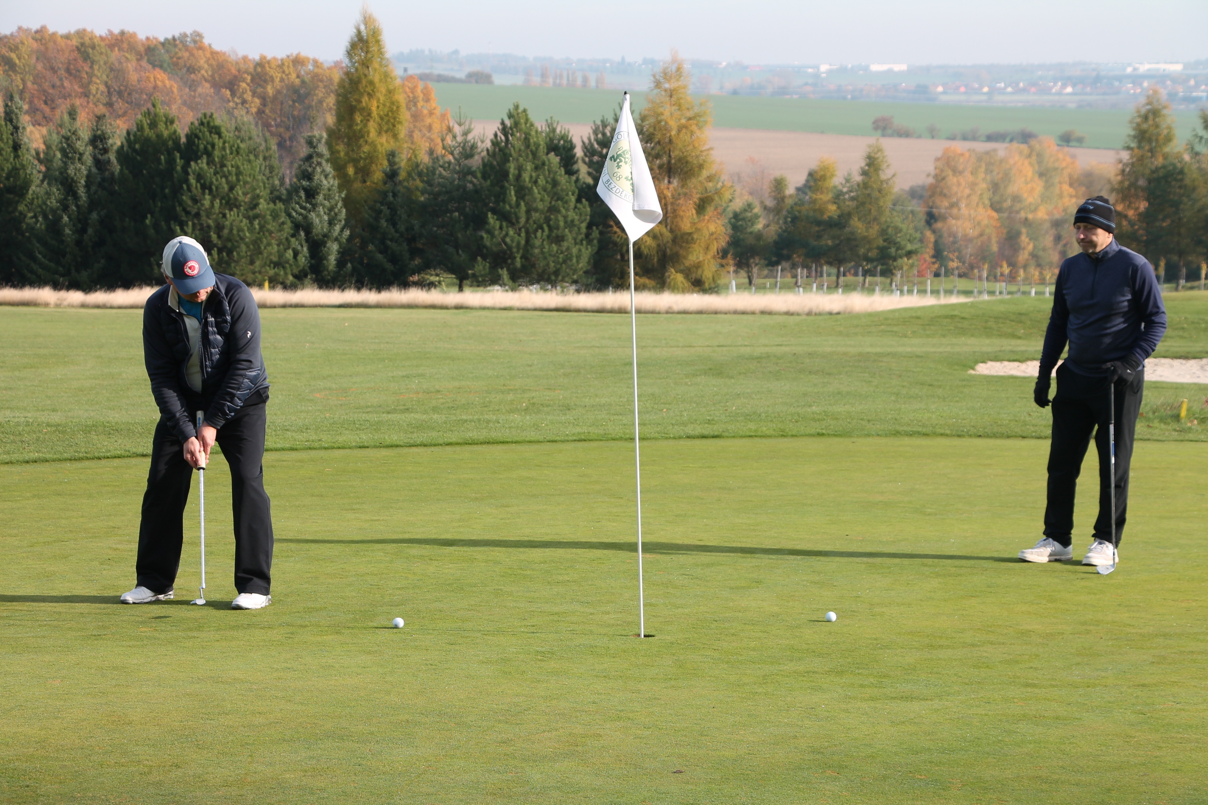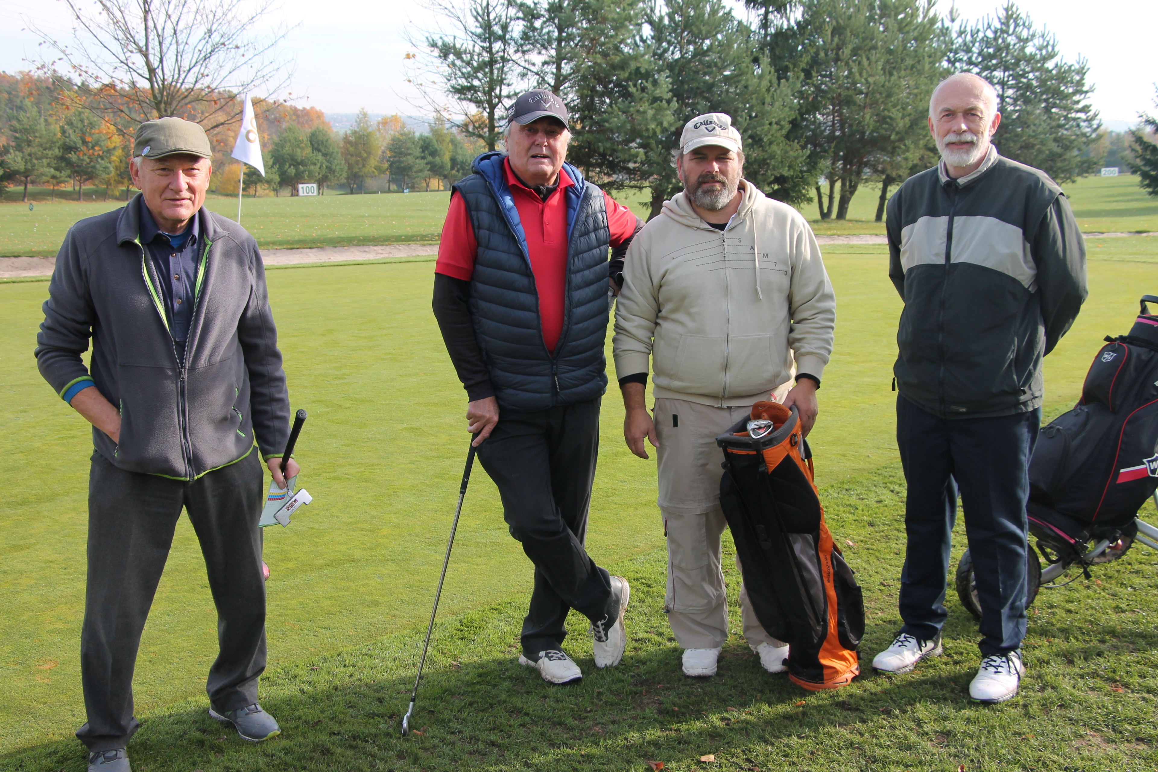 V neděli 19. října jsme odehráli na Botanice podzimní turnaj tří holí ve formátu Texas Scramble dvojic. Start byl v 10.00 dopoledne, za účasti celkem 34 hráčů tvořících 17 soutěžních dvojic se hrálo na 12 jamek. Počasí se vydařilo: ranní jinovatka pokrývající hrací plochy před desátou hodinou roztála a po celou dobu turnaje svítilo příjemné podzimní slunce. Teploměr sice ukazoval něco pod deset stupňů Celsia, ale díky slunci nebylo tak chladno, jak by se mohlo zdát.