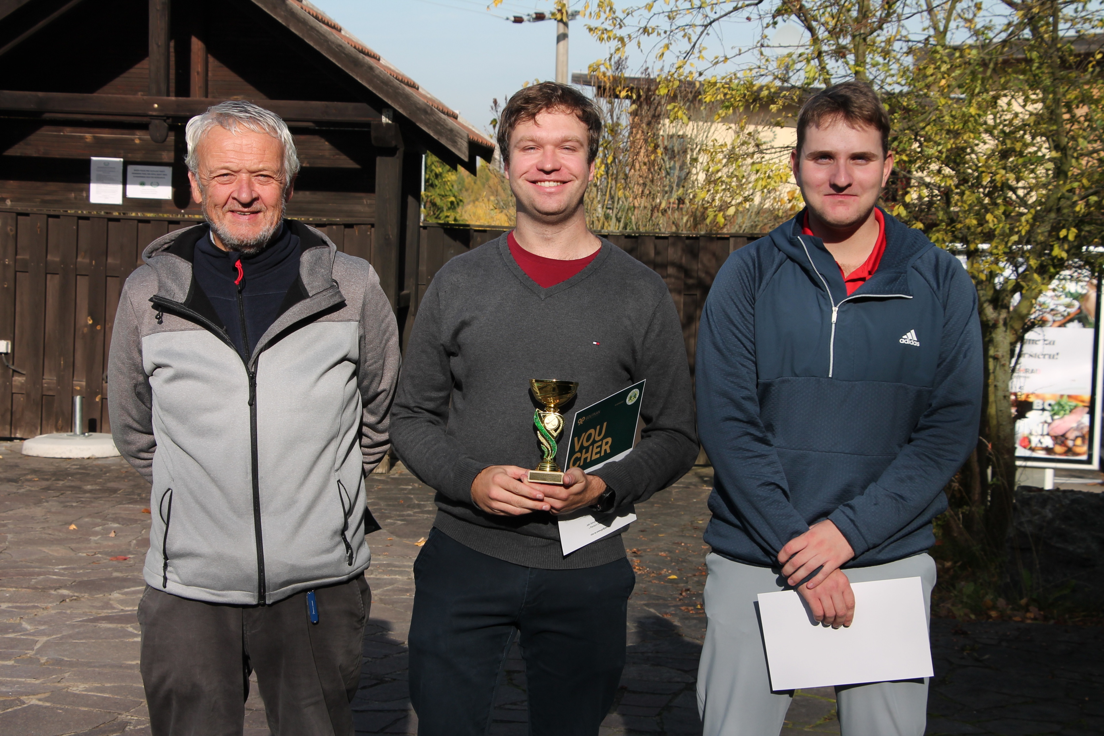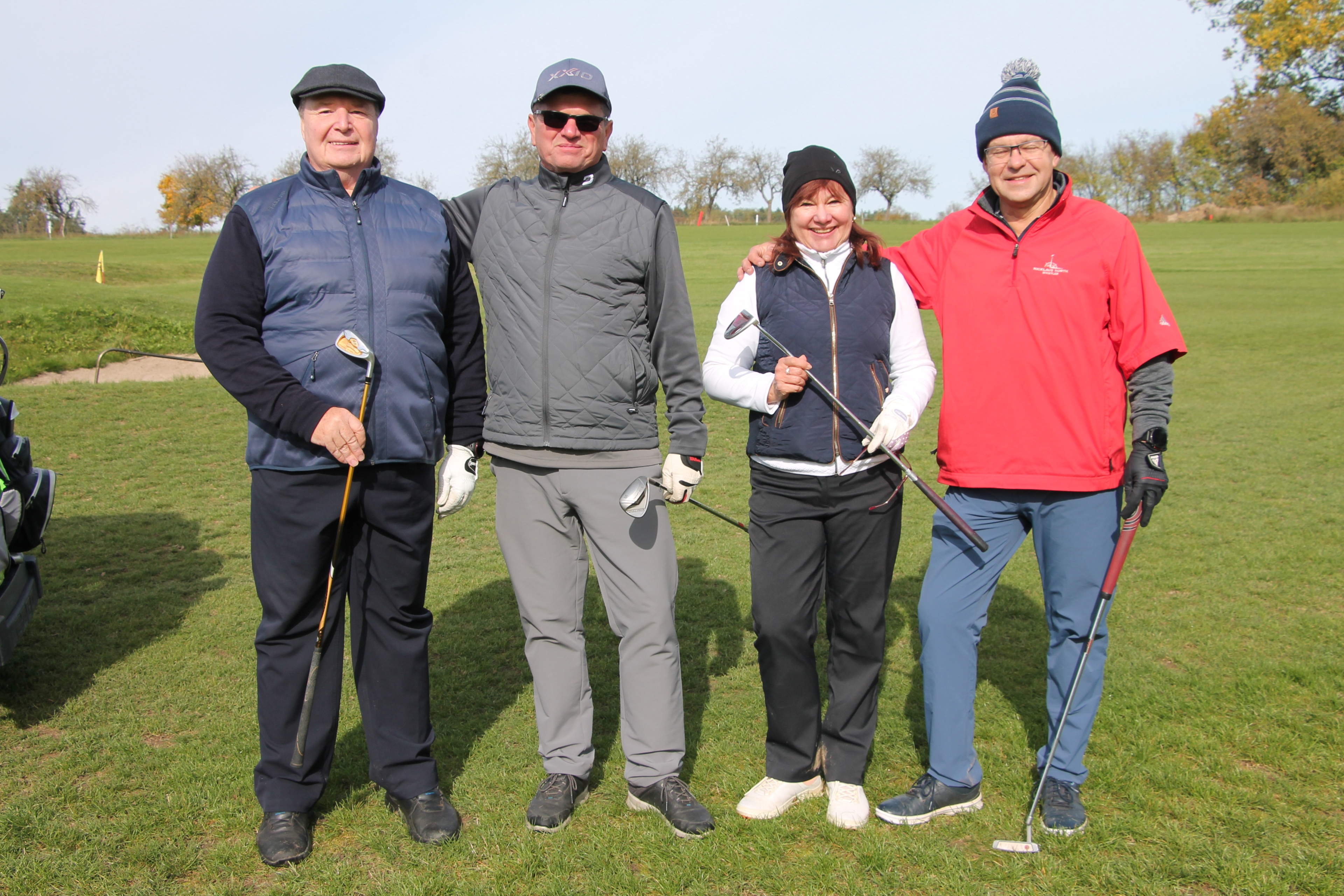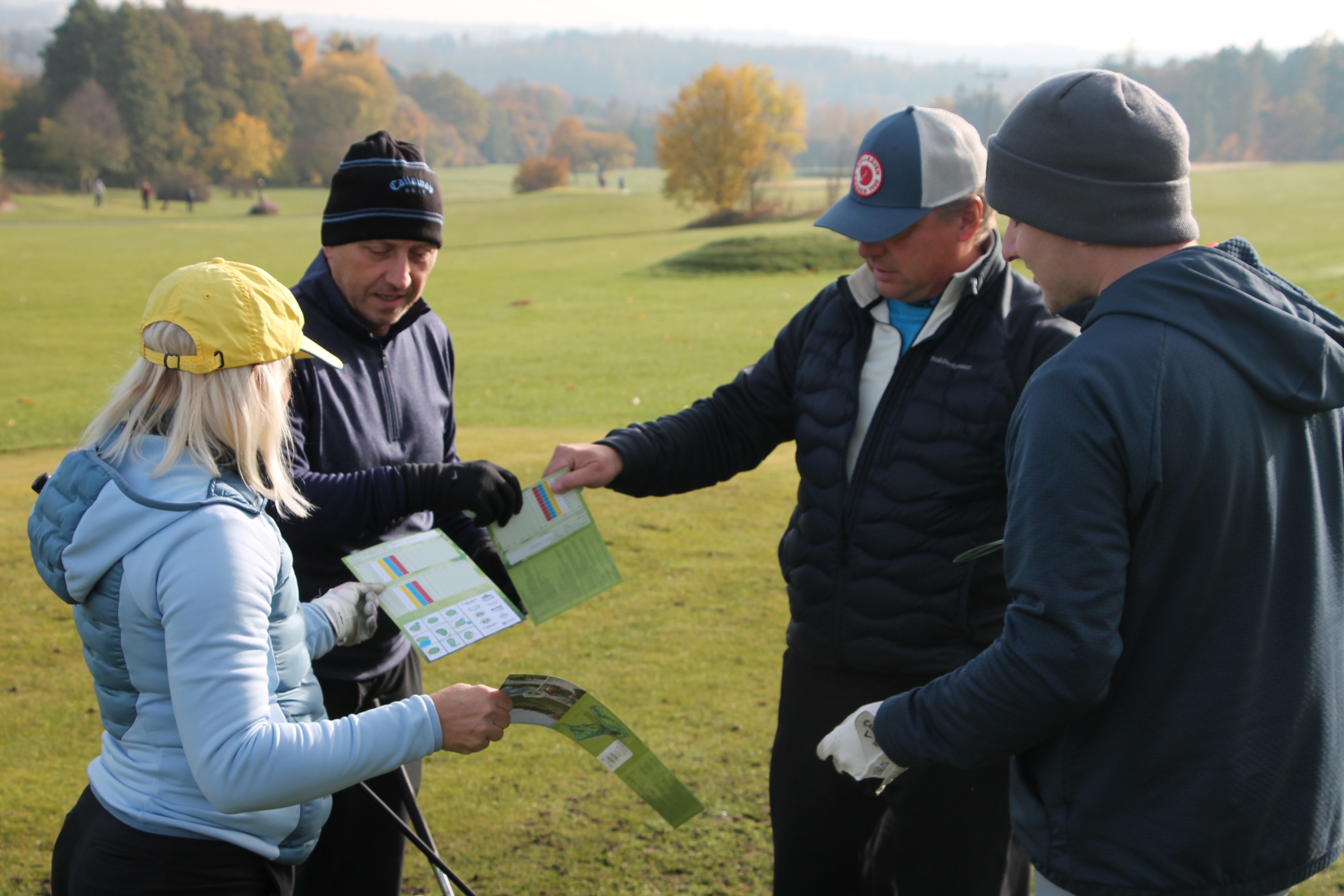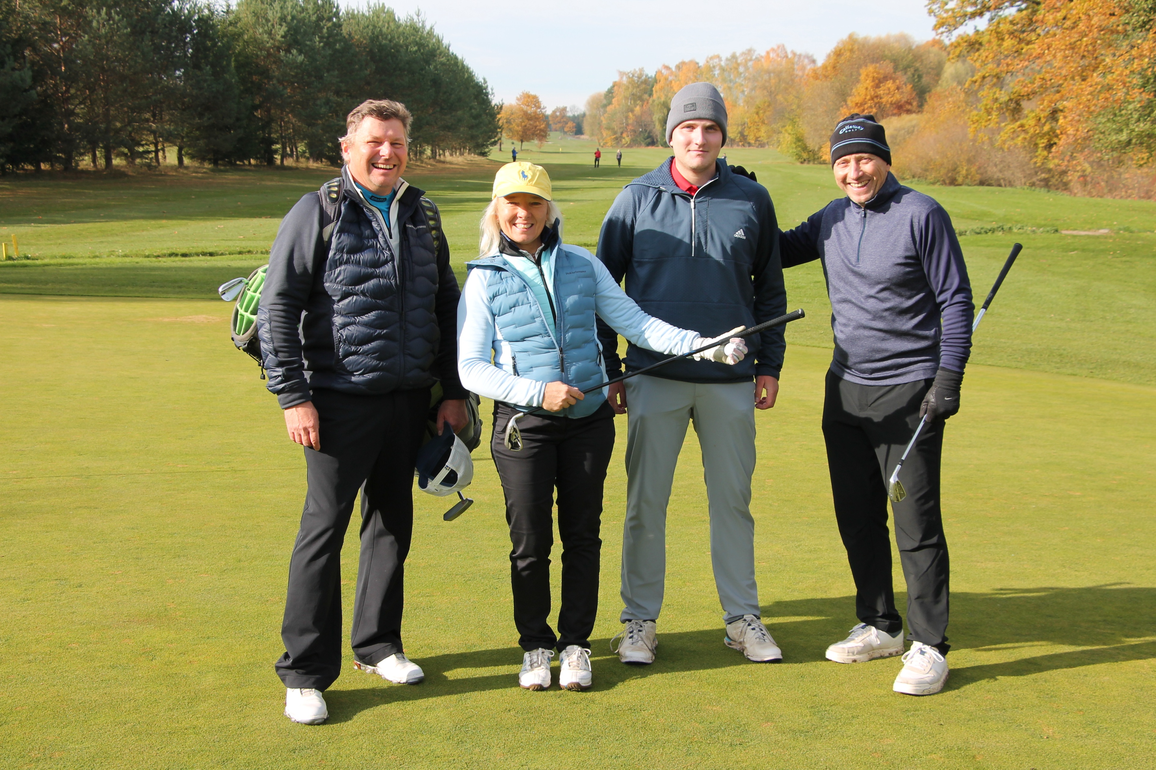 V neděli 19. října jsme odehráli na Botanice podzimní turnaj tří holí ve formátu Texas Scramble dvojic. Start byl v 10.00 dopoledne, za účasti celkem 34 hráčů tvořících 17 soutěžních dvojic se hrálo na 12 jamek. Počasí se vydařilo: ranní jinovatka pokrývající hrací plochy před desátou hodinou roztála a po celou dobu turnaje svítilo příjemné podzimní slunce. Teploměr sice ukazoval něco pod deset stupňů Celsia, ale díky slunci nebylo tak chladno, jak by se mohlo zdát.