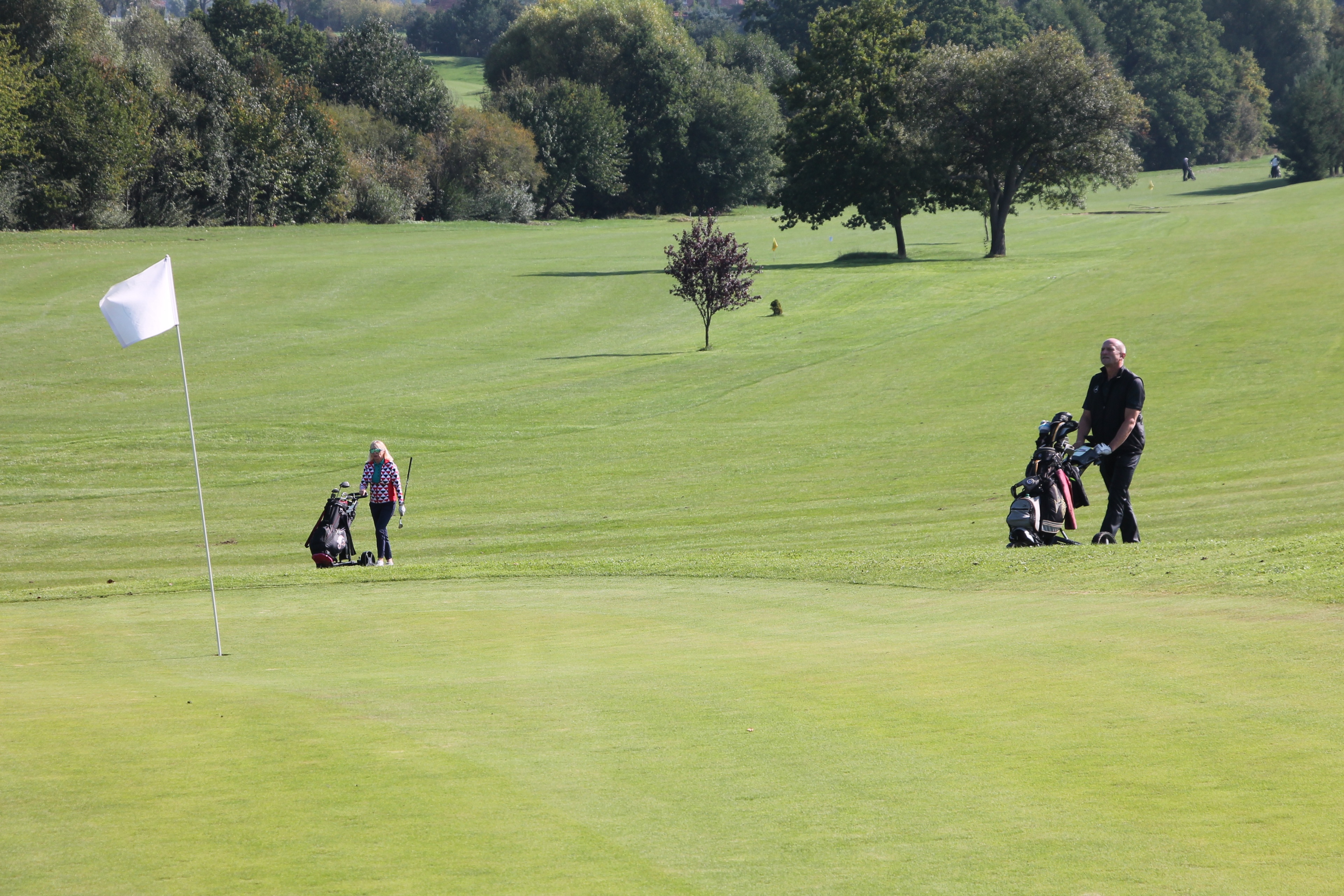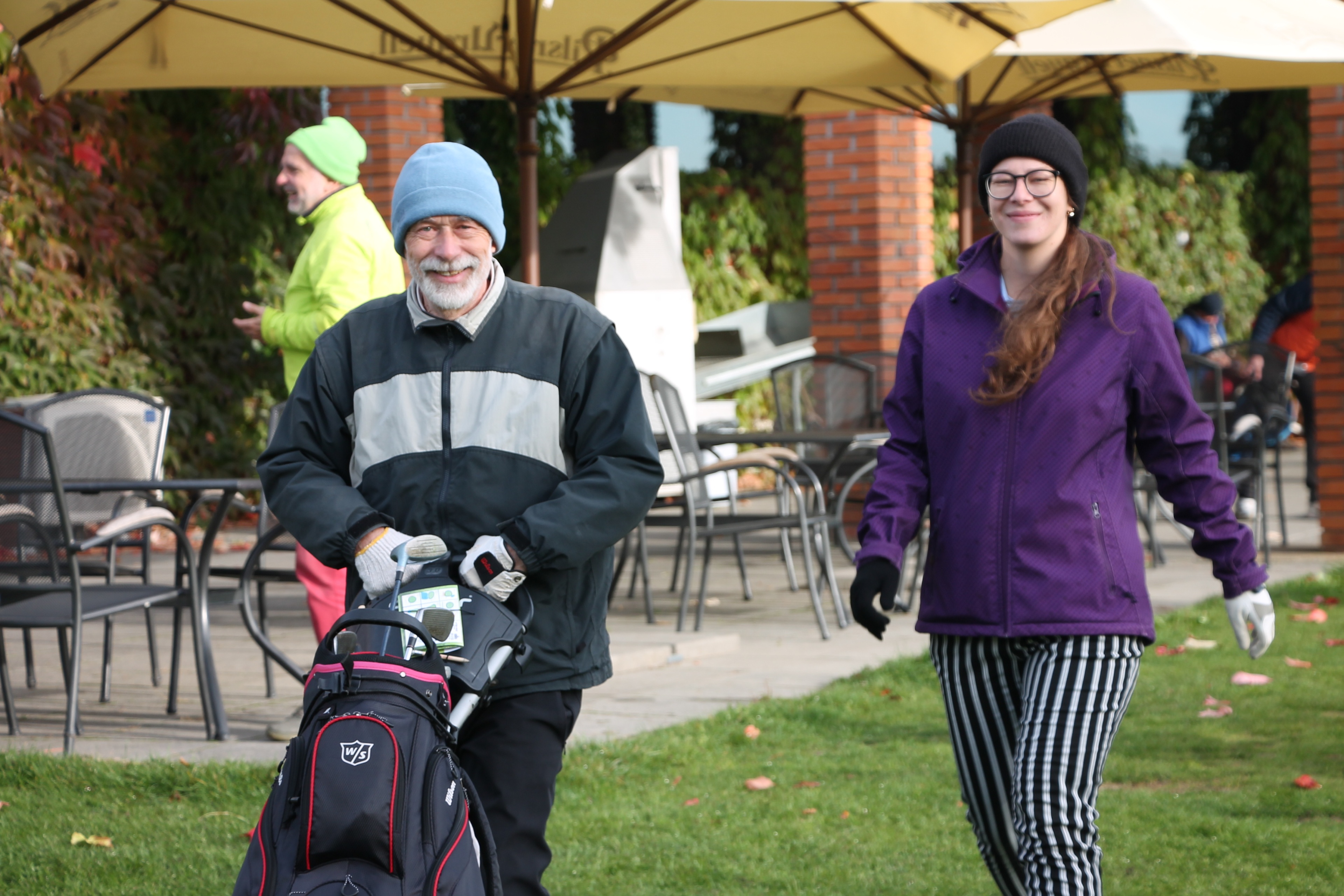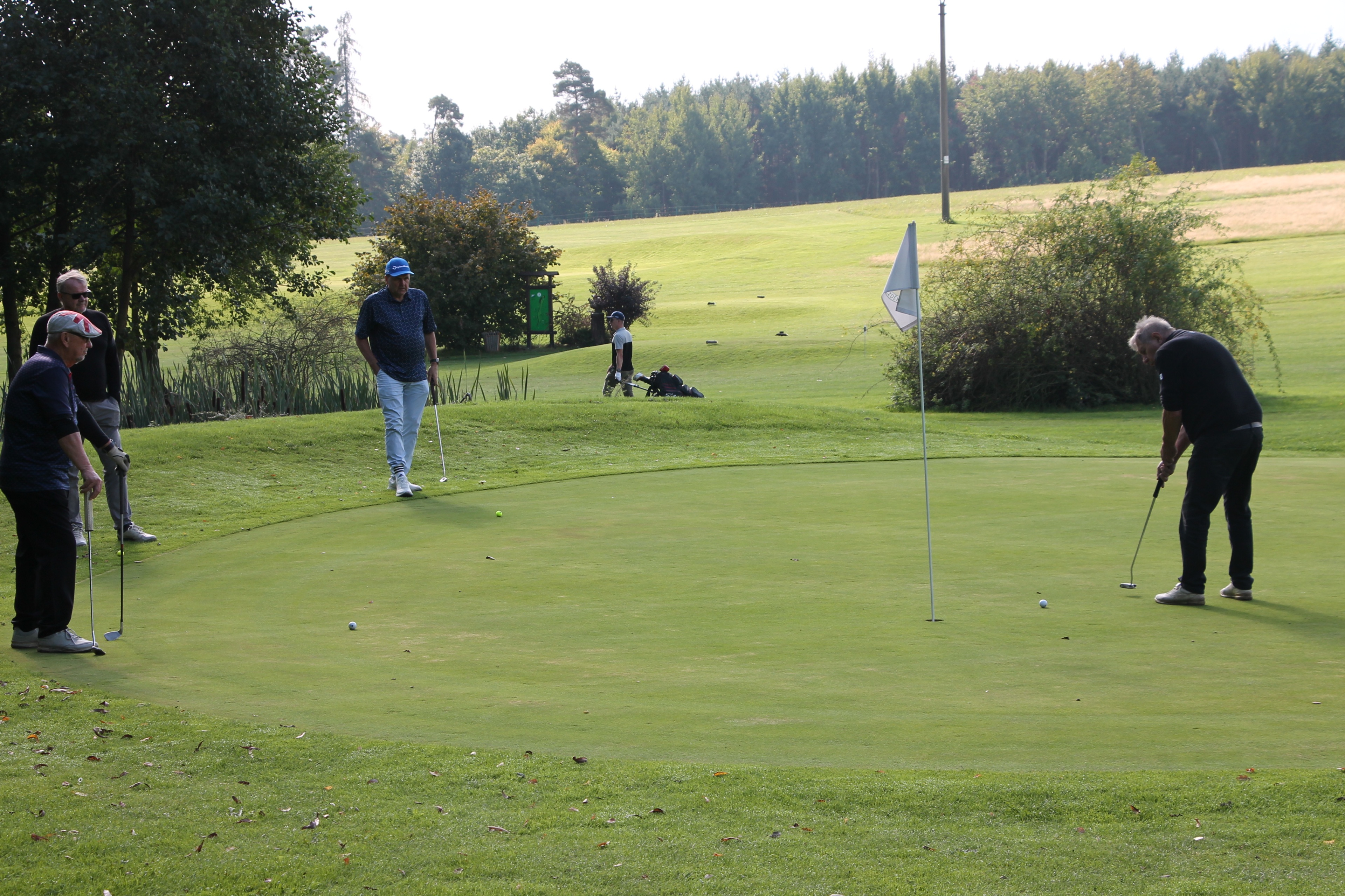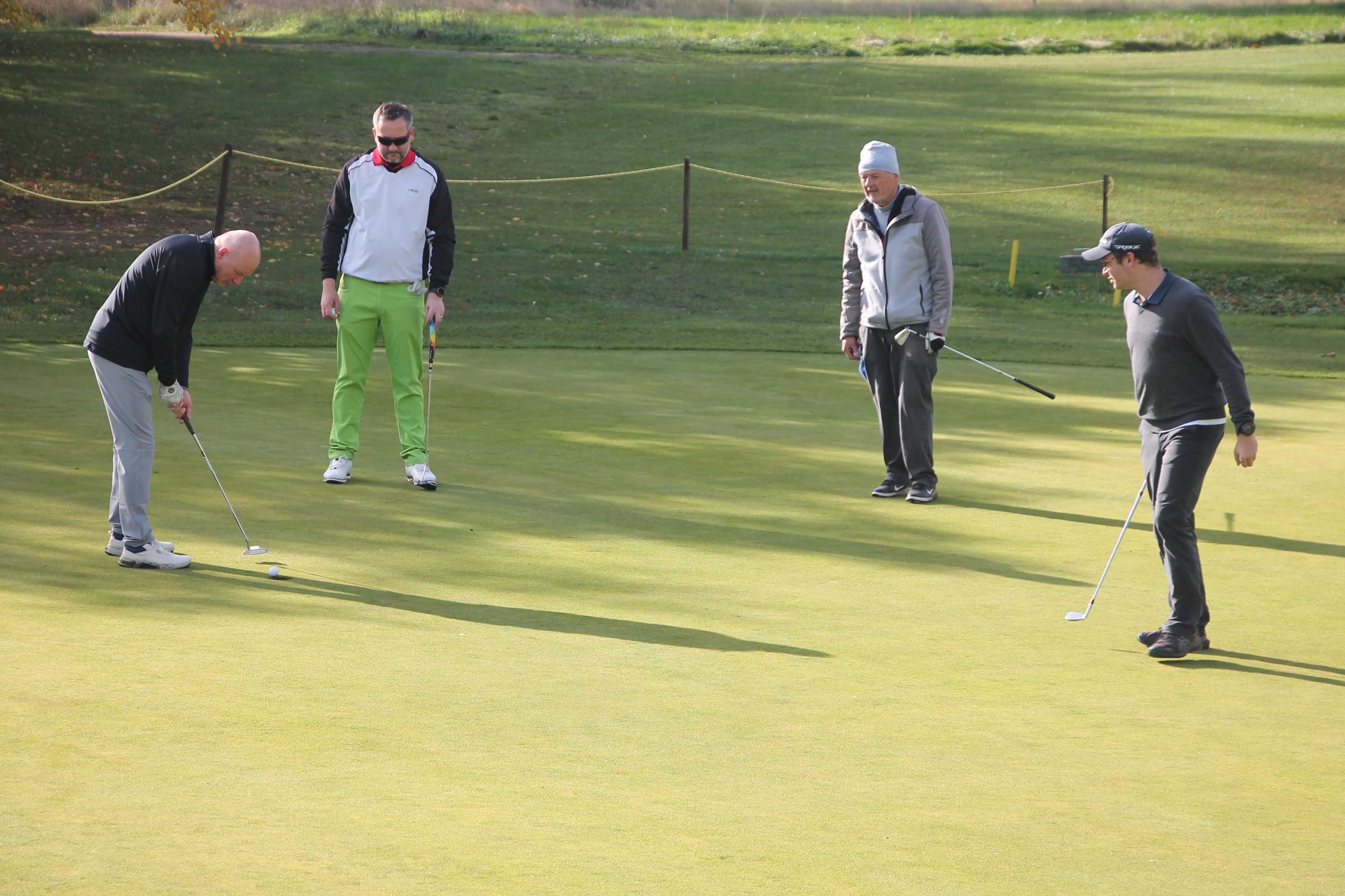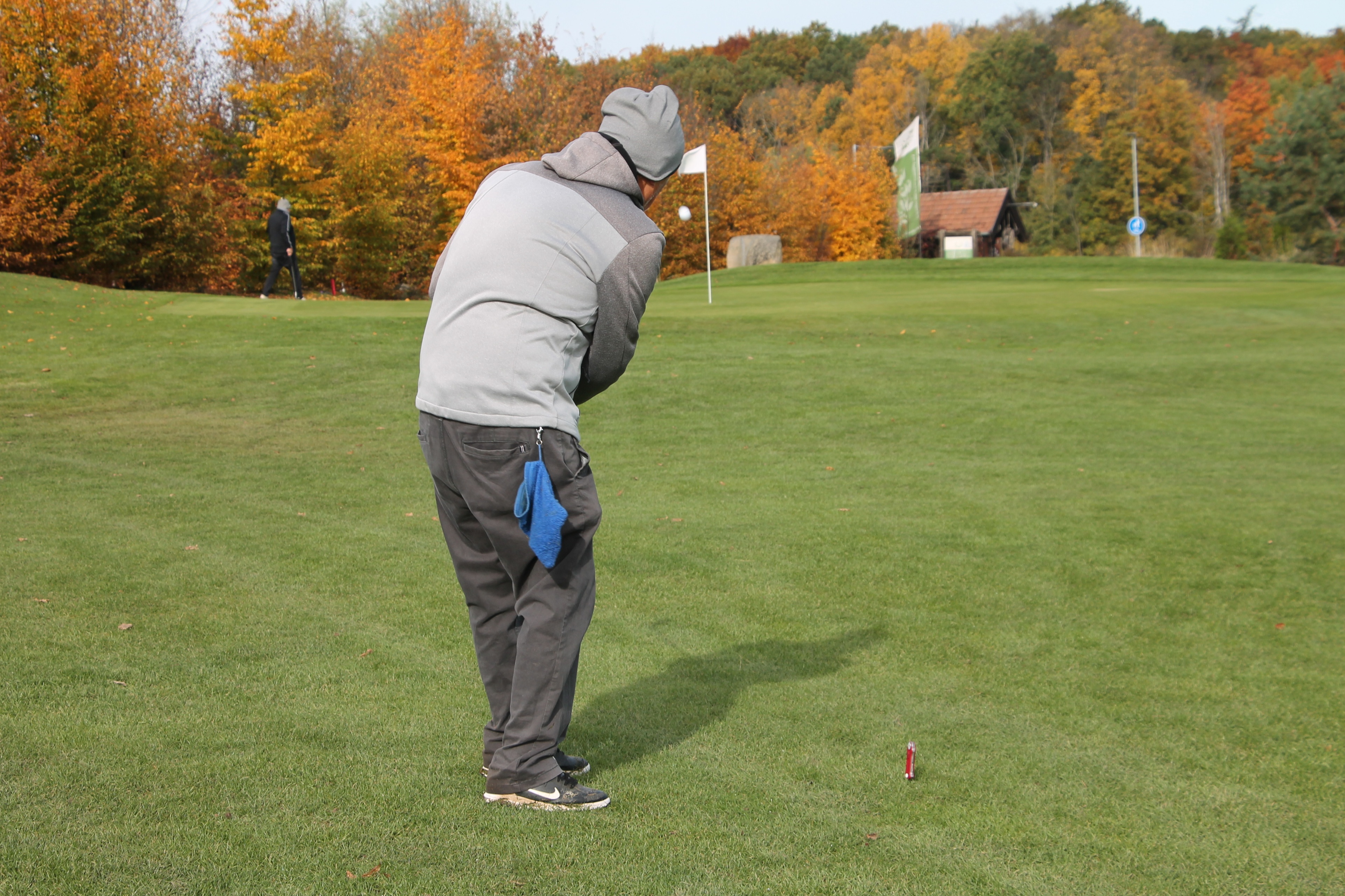 V neděli 19. října jsme odehráli na Botanice podzimní turnaj tří holí ve formátu Texas Scramble dvojic. Start byl v 10.00 dopoledne, za účasti celkem 34 hráčů tvořících 17 soutěžních dvojic se hrálo na 12 jamek. Počasí se vydařilo: ranní jinovatka pokrývající hrací plochy před desátou hodinou roztála a po celou dobu turnaje svítilo příjemné podzimní slunce. Teploměr sice ukazoval něco pod deset stupňů Celsia, ale díky slunci nebylo tak chladno, jak by se mohlo zdát.
